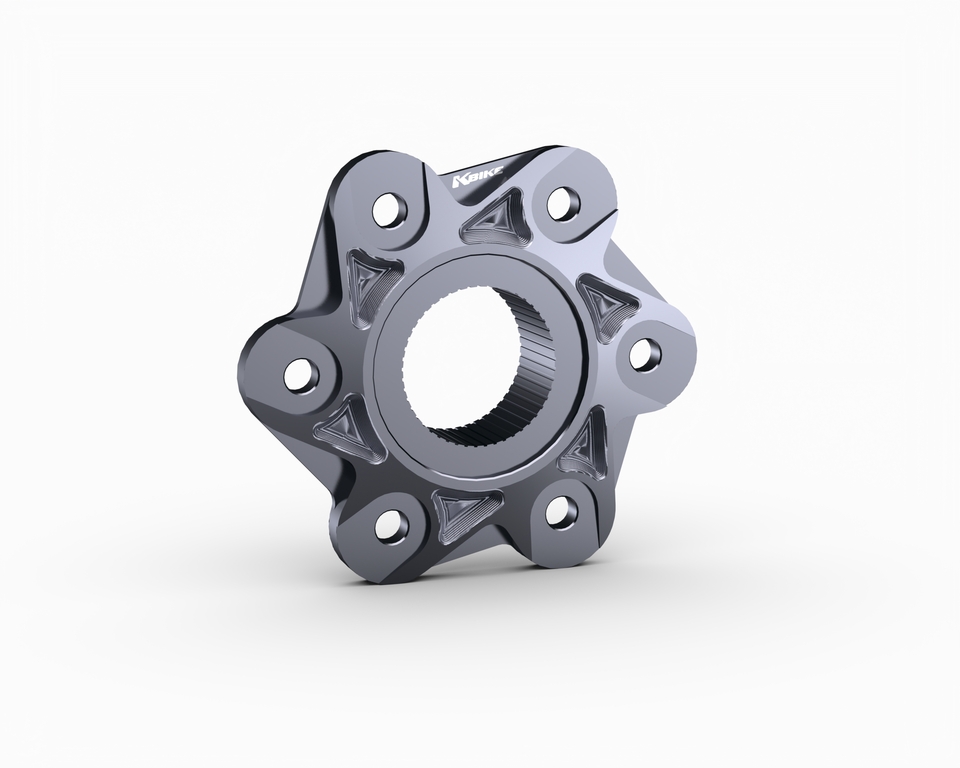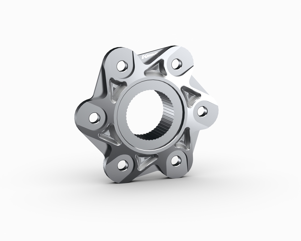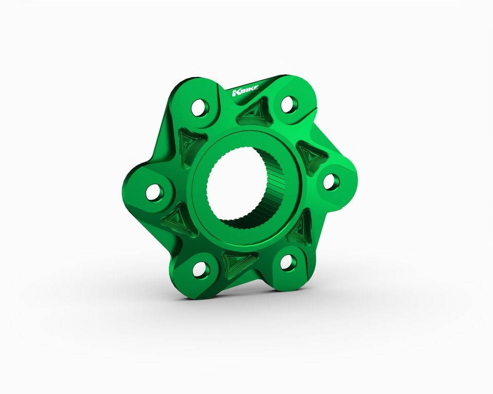 6-Loch-Kettenradadapter, kompatibel mit Modellen mit Einarmschwinge. Gefräst aus hochwertigem Aluminium und anschließend eloxiert.