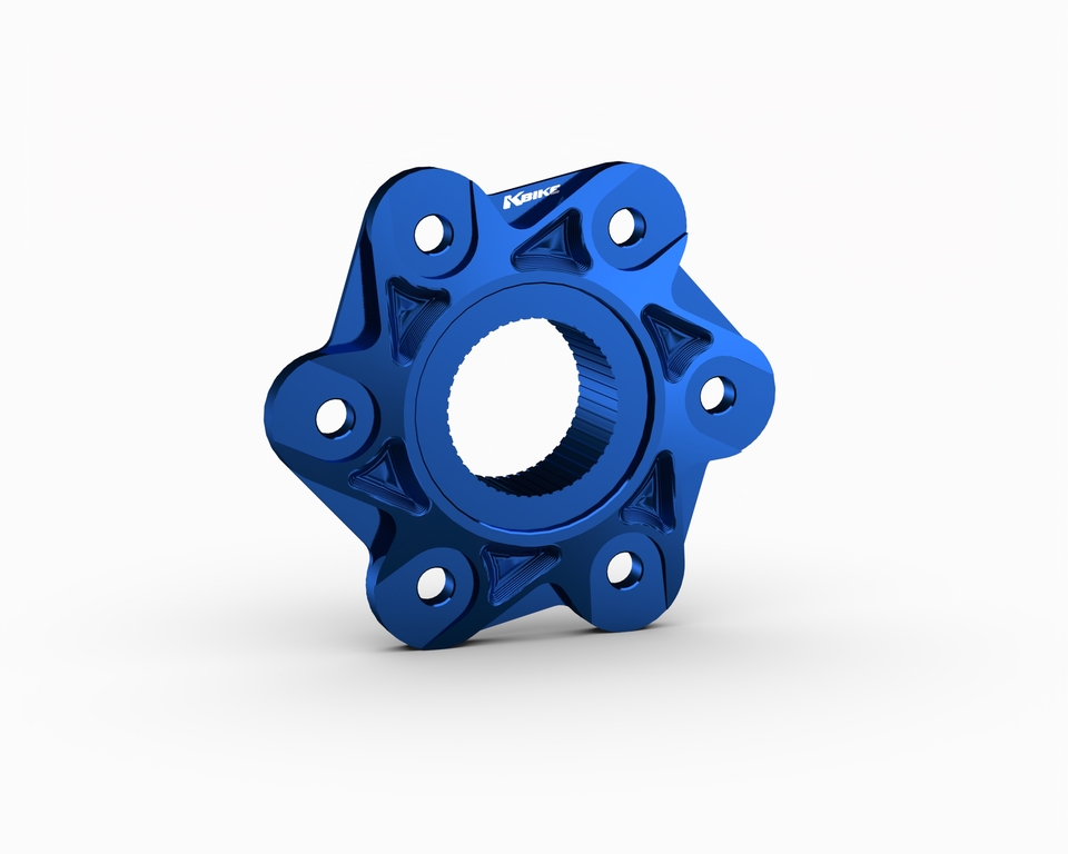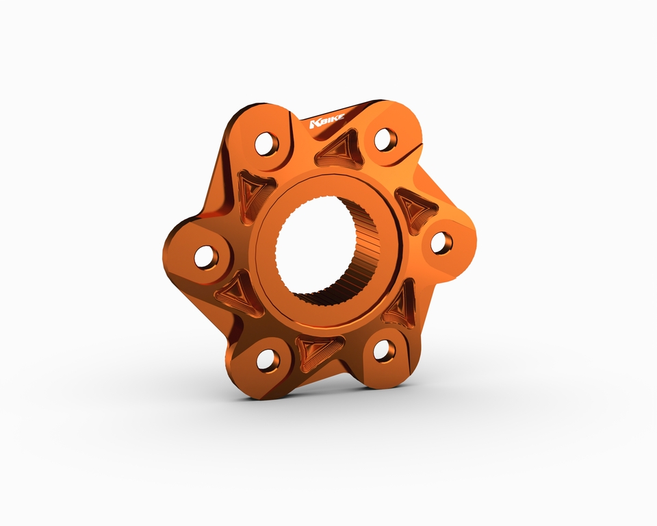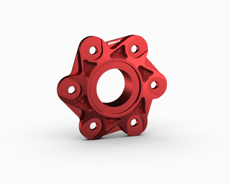 6-hole sprocket carrier flange compatible with models equipped with a single-sided swingarm. Machined from billet high quality aluminium and then anodized.