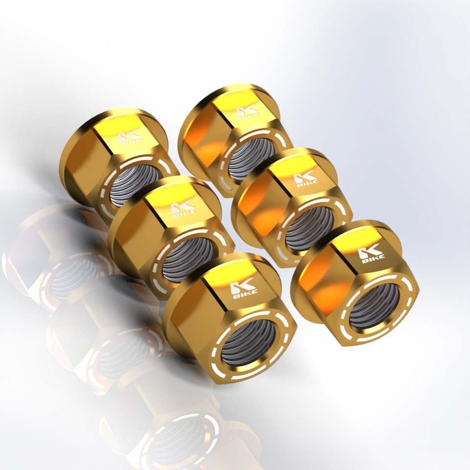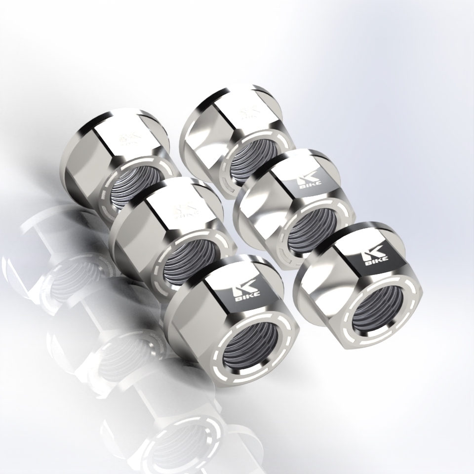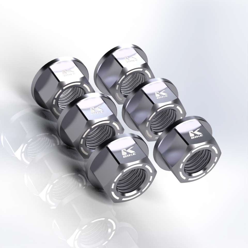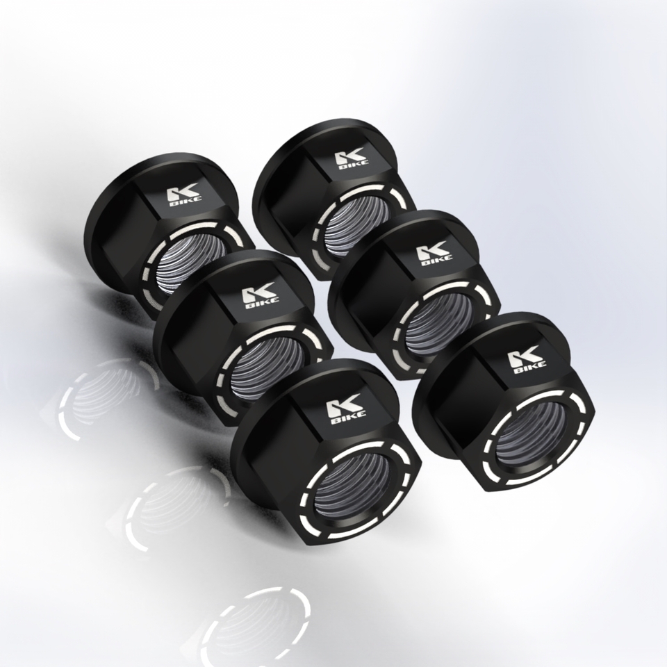 Nuts Kit 6 nuts M10x1 KB12 Nuts machined from solid in ergal 7075 T6 with M10x1 thread available in various colors All Kbike products are made for Racing use only.